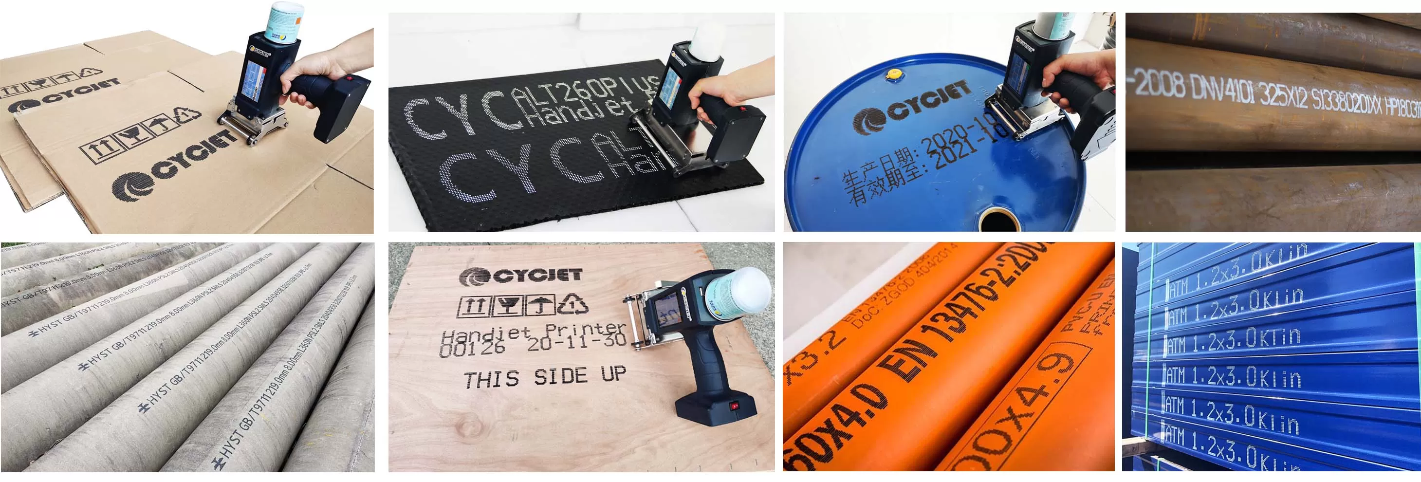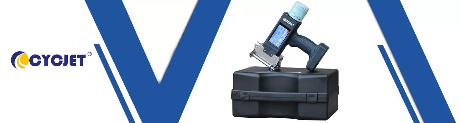Ручной струйный принтер CYCJET DOD, матрица 16 точек, матрица 24 точки, матрица 40 точек — по выбору. Компактный и портативный для печати крупных символов; технология DOD; матрица 40 точек поддерживает печать QR-кодов; максимальная высота символов — 62 мм; управление с помощью сенсорного экрана.