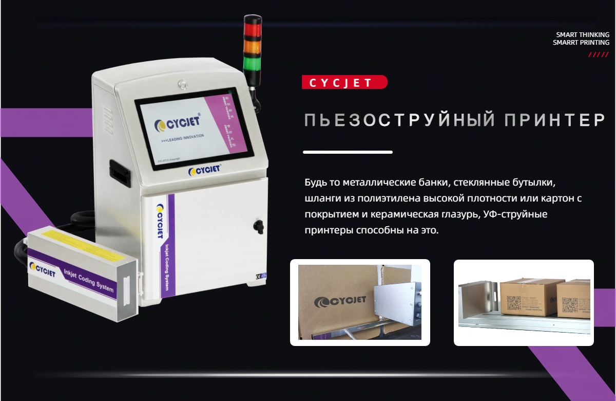 Ультрафиолетовый струйный принтер - это высокоэффективное и высокоточное струйное оборудование, которое может печатать текст, узоры, штрих-коды, QR-коды и другую информацию непосредственно на поверхности различных материалов.
