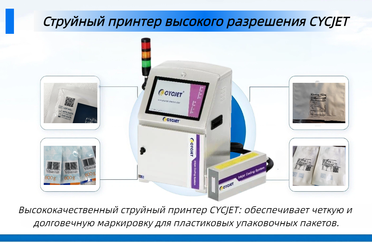 Однако этот упаковочный материал предъявляет чрезвычайно высокие требования к технологии струйной маркировки. Выбор подходящего струйного принтера, обеспечивающего четкость, долговечность и соответствие требованиям, стал ключевым фактором для компаний. Пьезоструйный принтер CYCJET, обладающий превосходной производительностью, представляет собой идеальное решение для маркировки гибкой пленочной упаковки.