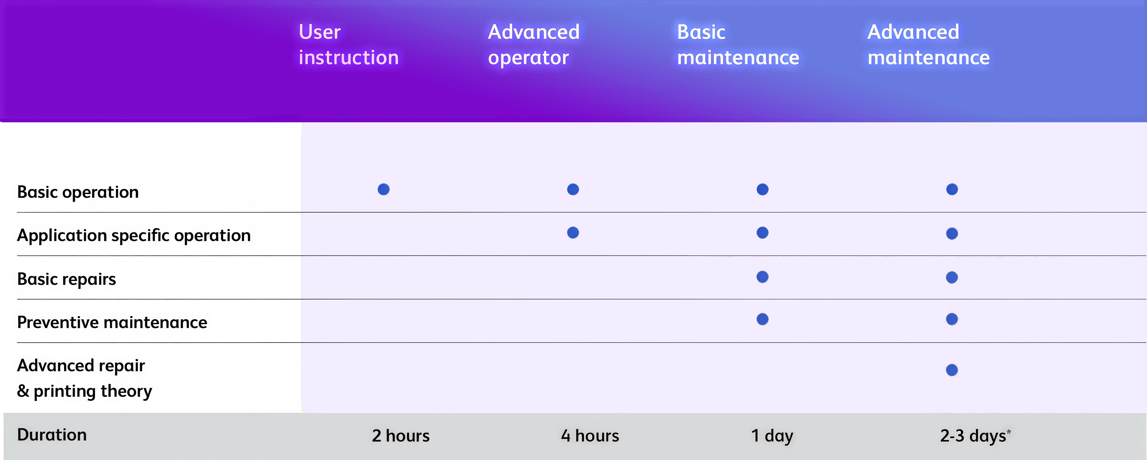 * Продолжительность курса продвинутого технического обслуживания зависит от применяемой технологии